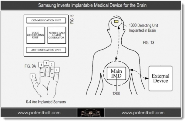 Samsung consiguió la patente para un dispositivo médico implantable que puede leer y transmitir información desde el cerebro. Se trata de un microchip RFID que actuará como un router Wi-Fi en el cuerpo, y que será vendido junto a un nuevo modelo de teléfono móvil de Samsung. La corporación china había solicitado en el 2012 la patente para un dispositivo médico implantable que puede transmitir información fisiológica / patológica a un “dispositivo externo”.