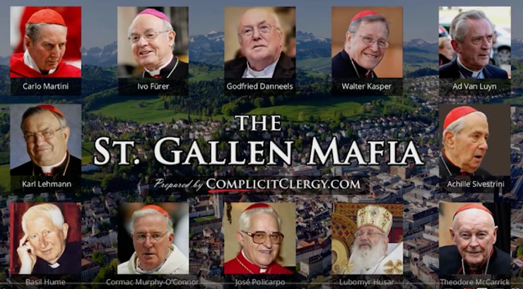 Cabe resaltar que esa "mafia", conocidos entre sí como el "Grupo de Saint Gall", por la abadía suiza en que se celebraban esas reuniones, se auto excomulgó de la Iglesia, pues la constitución apostólica Universi Dominici Gregis, promulgada por Juan Pablo II, prohíbe las maquinaciones y acuerdos entre cardenales para influir en la elección de un Papa. ( w2.vatican.va/content/john.../hf_jp-ii_apc_22021996_universi-dominici-gregis.html )El artículo 79 dice así: "Confirmando también las prescripciones de mis Predecesores, prohíbo a quien sea, aunque tenga la dignidad de Cardenal, mientras viva el Pontífice, y sin haberlo consultado, hacer pactos sobre la elección de su Sucesor, prometer votos o tomar decisiones a este respecto en reuniones privadas".