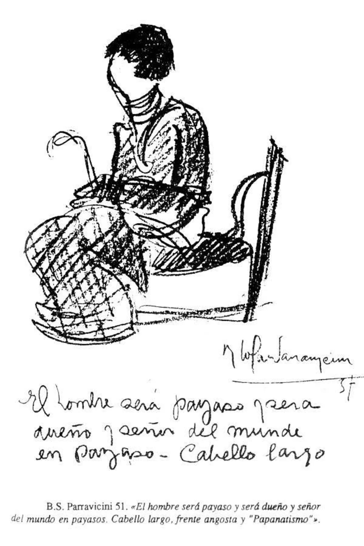 La pictografía señala que «el hombre será payaso, será dueño y señor del mundo, en payaso. Cabello largo, frente angosta y ‘papanatismo’», en una obra que se le adjudica a Benjamín Solari Parravicini que data del año 1937. ...en el Te Deum 2025 ¡SIN ESCARPELA!