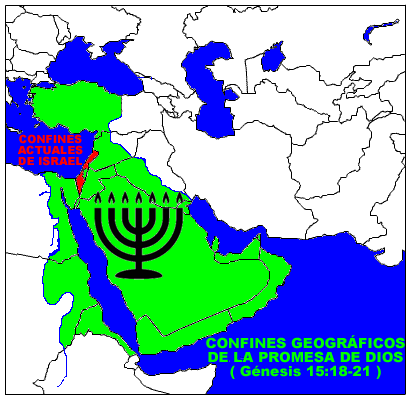 Y este es el territorio bíblico dado al Estado de Israel, con la bandera y el símbolo de los hebreos judíos semitas, y no el logo de los kázaros Rotschild (ex Bauer), tomado del pagano anillo del rey Salomón.