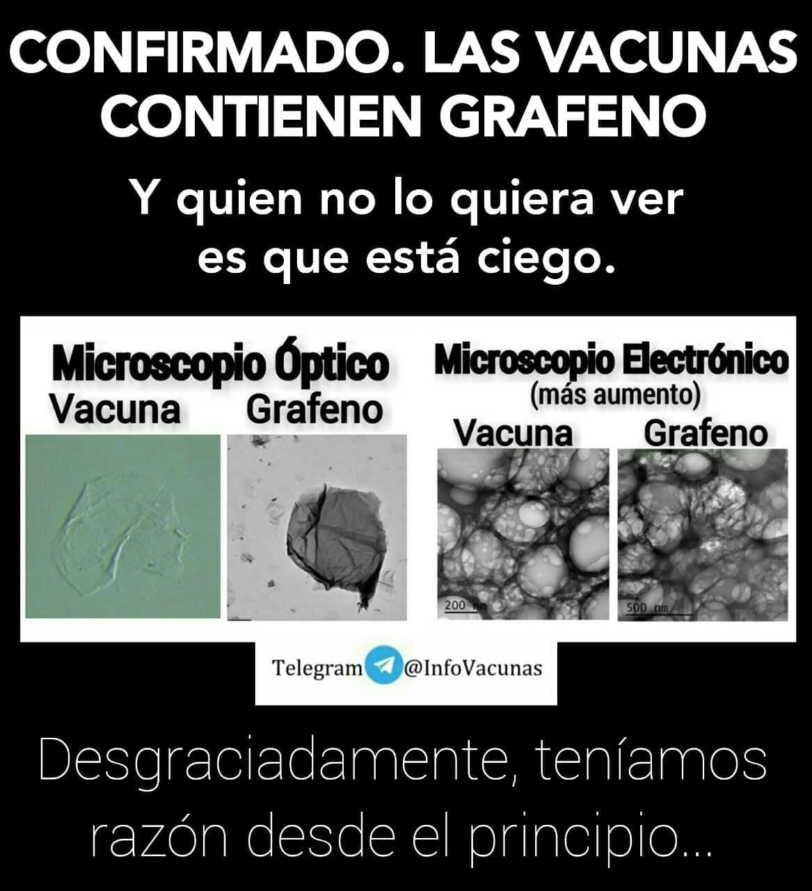La Dra. Liliana Zelada (agosto 2022) encuentra grafeno al microscopio en las vacunas de: Pfizer, Astrazeneca, Sputnik, Moderna, Shinofarm y en anestésico local (lidocaína) del laboratorio Zeyco. https://www.burbuja.info/inmobiliaria/threads/la-dra-liliana-zelada-odontologa-encuentra-oxido-de-grafeno-al-microscopio-en-las-vacunas-de-pfizer-astrazeneca-sputnik-moderna-shinofarm-y.1804597/
