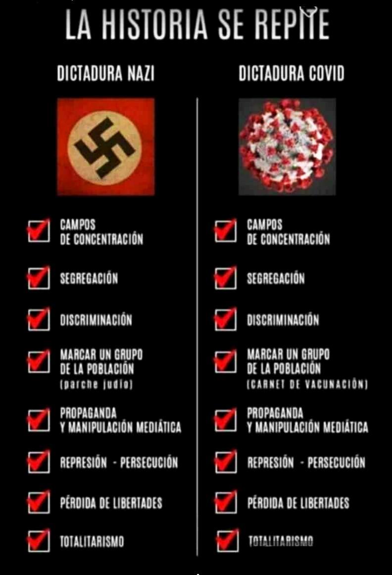 Ya no pueden decir que el pase verde mejorará nuestras vidas porque es la herramienta para instaurar definitivamente una dictadura política basada en el miedo y en las emergencias de salud eterna justificadas por falsas bases científicas que disfruta dividiendo a la sociedad en bandos opuestos, del bien y del bien. tipos malos, que se enfrentan entre sí en lugar de luchar contra el enemigo común.