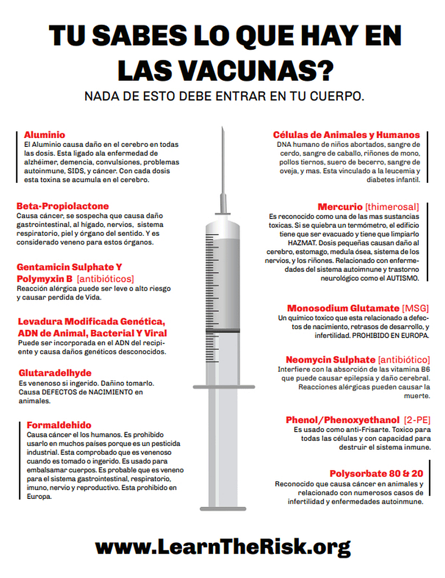 La vacuna trae nano chips. Te pueden rastraer y monitorear. Te pueden enfermar y hasta matar.