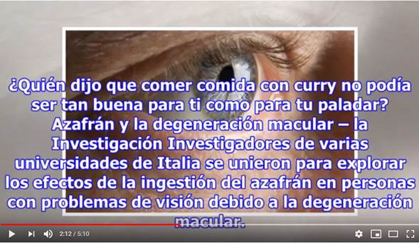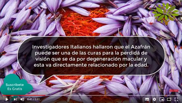 Un equipo de investigadores de Italia ha descubierto lo que podría ser la cura para la pérdida de la visión por degeneración macular relacionada con la edad. No sólo sus investigaciones demuestran que el azafrán podría prevenir la pérdida de visión, pero en realidad ha revertido la pérdida de visión por degeneración macular relacionada con la edad, en participantes del estudio; a partir de los 3 meses de suministrarlo diariamente (con cuidado en las dosis, porque resulta tóxico).